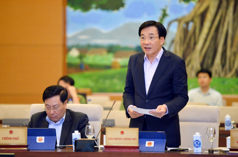 "Ngày 27/11/2022, tức hôm qua, Văn phòng Chính phủ đã có Văn bản số 7967 thông báo ý kiến của Thủ tướng, giao đồng chí Bộ trưởng Bộ Công an thừa uỷ quyền của Thủ tướng, thay mặt Chính phủ báo cáo và có tờ trình báo cáo về các dự án luật nêu trên với UBTVQH", Bộ trưởng, Chủ nhiệm Văn phòng Chính phủ Trần Văn Sơn thông tin.