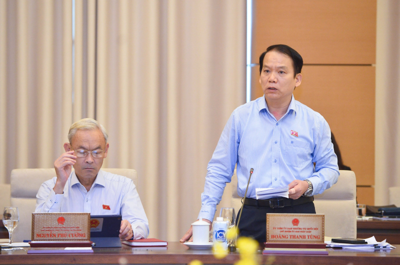 Chủ nhiệm Uỷ ban Pháp luật Hoàng Thanh Tùng thảo luận tại phiên họp.
