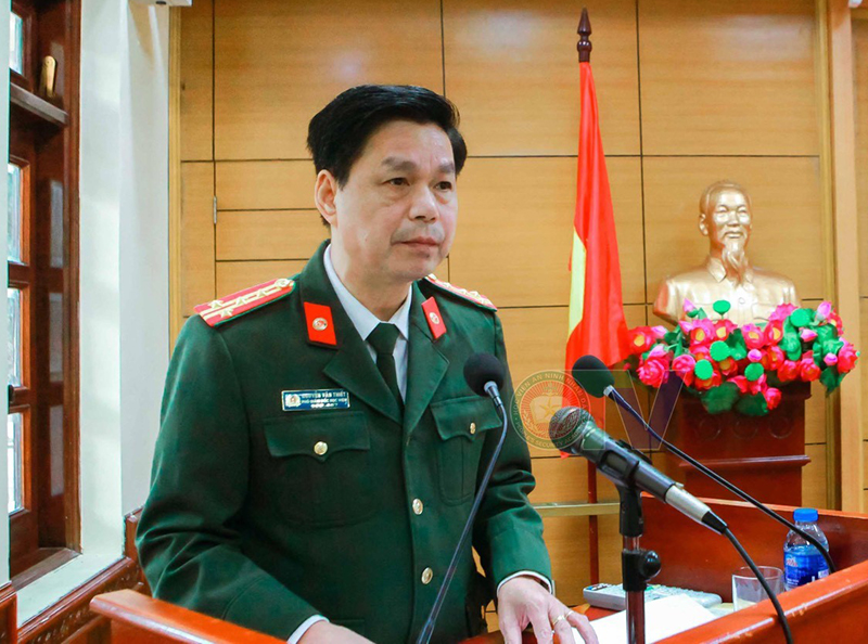 Đại tá, TS Nguyễn Văn Thiết- Phó Giám đốc Học viện phát biểu tại Lễ Khai giảng.