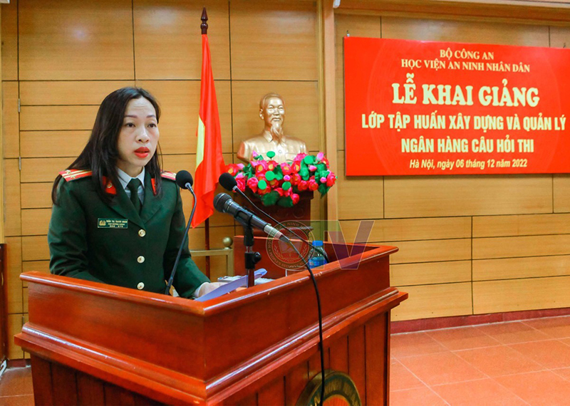 Phát biểu tại Lễ Khai giảng, Đại tá, TS Nguyễn Văn Thiết - Phó Giám đốc Học viện nhấn mạnh, hoạt động thi, kiểm tra là khâu đặc biệt quan trọng trong quá trình dạy học, là một trong những nội dung trọng yếu trong cải cách giáo dục, nâng cao chất lượng đào tạo theo hướng tăng cường quản lý, kiểm soát chất lượng đầu ra. Nghị quyết số 17 ngày 28/10/2014 của Đảng ủy Công an Trung ương về “Đổi mới căn bản, toàn diện giáo dục đào tạo trong Công an nhân dân” xác định nghiên cứu thực hiện đổi mới hình thức và phương pháp thi, kiểm tra, đánh giá kết quả giáo dục, đào tạo, đảm bảo trung thực, khách quan, đánh giá đúng kết quả học tập người học. Do đó, mục đích của lớp tập huấn nhằm bồi dưỡng, nâng cao năng lực, kiến thức, kỹ năng cho đội ngũ cán bộ, giảng viên về xây dựng và quản lý ngân hàng câu hỏi thi; đồng thời, tạo diễn đàn trao đổi kinh nghiệm, kỹ năng, phương pháp xây dựng, đánh giá chất lượng và quản lý, sử dụng ngân hàng câu hỏi thi, góp phần nâng cao chất lượng công tác thi, kiểm tra, đánh giá của Học viện ANND.