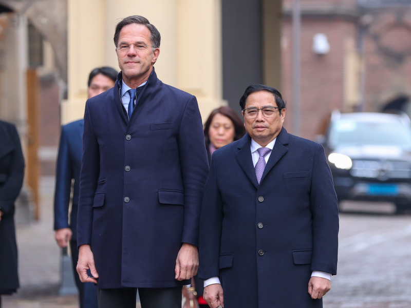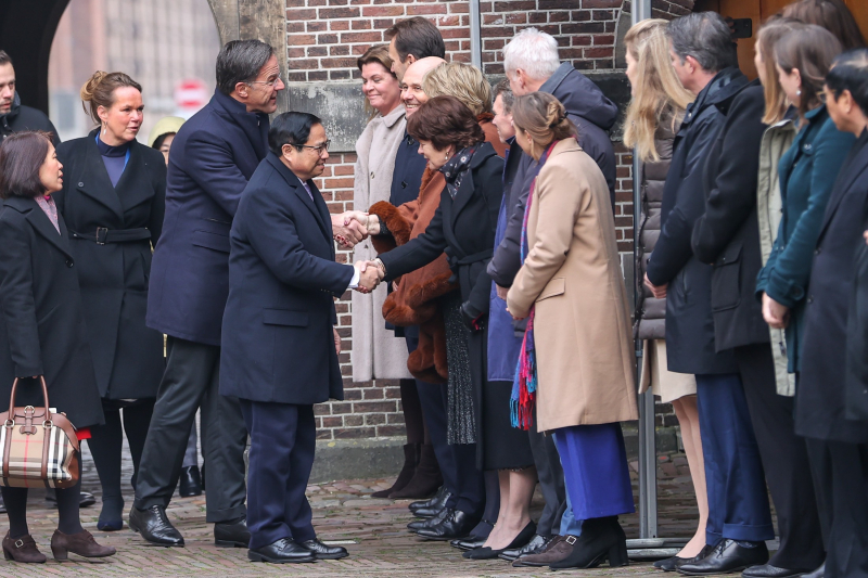Sáng 12/12 (giờ địa phương), tại Phủ Thủ tướng, Thủ tướng Hà Lan Mark Rutte chủ trì Lễ đón chính thức Thủ tướng Phạm Minh Chính trước khi hai bên tiến hành hội đàm, chứng kiến Lễ ký kết các văn kiện hợp tác.