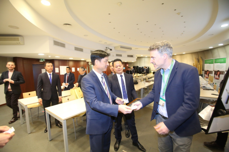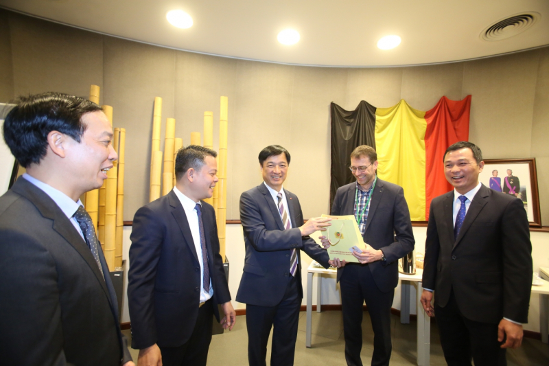 Thứ trưởng Nguyễn Duy Ngọc tặng quà các lãnh đạo và chuyên gia chuyển đổi số Vương quốc Bỉ.