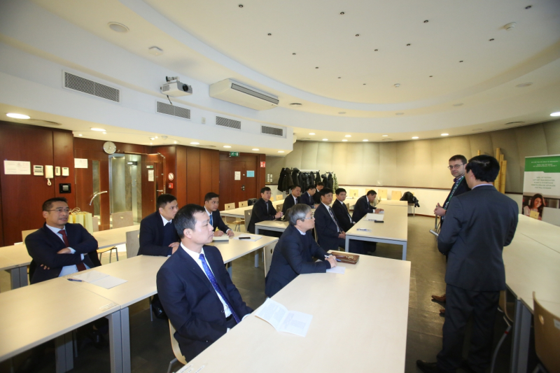 Thứ trưởng Nguyễn Duy Ngọc lắng nghe các chuyên gia của Bỉ giới thiệu về quá trình thực hiện chuyển đổi số tại đây.