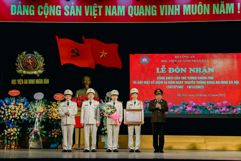 Sáng 18/12, tại Hà Nội, Học viện An ninh nhân dân (ANND) tổ chức Lễ đón nhận Bằng khen của Thủ tướng Chính phủ và gặp mặt kỷ niệm 40 năm Ngày truyền thống Khoa An ninh xã hội (18/12/1982 - 18/12/2022).