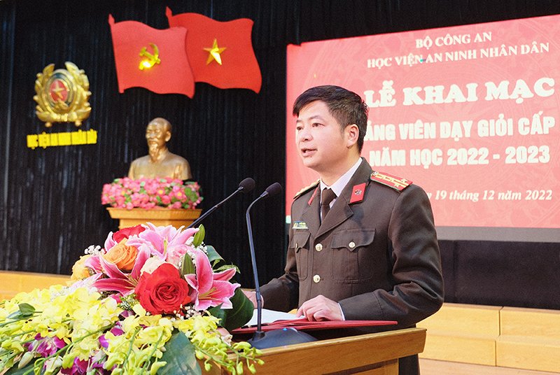Trong diễn văn khai mạc, Thiếu tướng, TS Trần Kim Hải - Phó Giám đốc Học viện nhấn mạnh, đội ngũ giảng viên có vai trò quan trọng đối với thành công của sự nghiệp giáo dục, đào tạo. Xây dựng đội ngũ giảng viên đủ về số lượng, đảm bảo về chất lượng, vững vàng về chuyên môn và phương pháp giảng dạy là quan điểm chỉ đạo xuyên suốt của Đảng uỷ Công an Trung ương, lãnh đạo Bộ Công an. Do đó, để thực hiện mục tiêu xây dựng Học viện ANND trở thành cơ sở giáo dục trọng điểm, đạt chuẩn quốc gia, Đảng uỷ, Ban Giám đốc Học viện luôn tăng cường thực hiện nhiều biện pháp nhằm xây dựng, bồi dưỡng đội ngũ giảng viên một cách toàn diện. Hội thi giảng viên dạy giỏi cấp Học viện là hoạt động chuyên môn, có ý nghĩa thiết thực, tác động tích cực đến việc nâng cao chất lượng đào tạo tại Học viện. Hội thi chính là diễn đàn để các giảng viên ưu tú, xuất sắc của các khoa gặp gỡ, đua tài, trau dồi kiến thức chuyên môn nghiệp vụ sư phạm và đổi mới sáng tạo trong phương pháp giảng dạy.