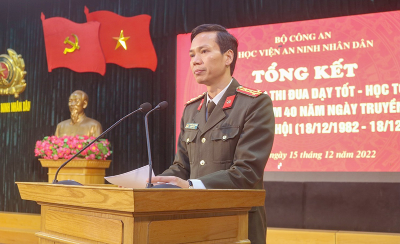 Ngày 15/12/2022, Học viện An ninh nhân dân (ANND) tổ chức chương trình Tổng kết phong trào thi đua “Dạy tốt - học tốt” chào mừng kỷ niệm 40 năm Ngày truyền thống Khoa An ninh xã hội (18/12/1982-18/12/2022).