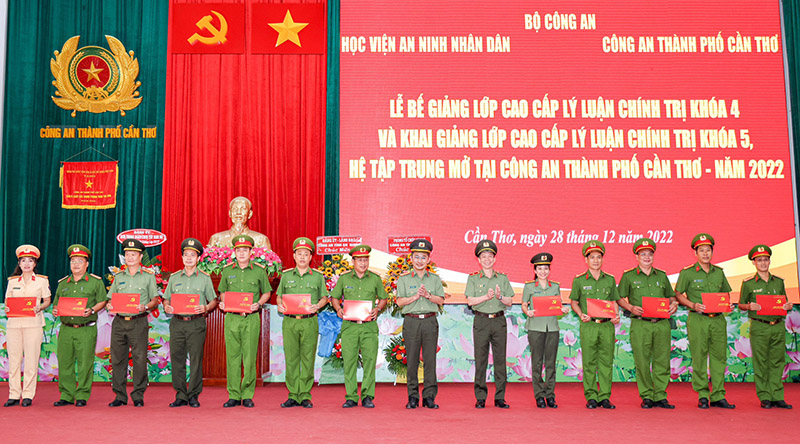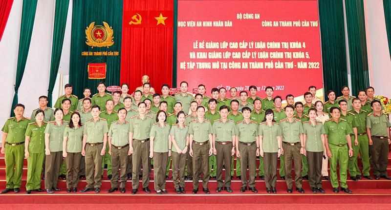 Ngày 28/12/2022, Học viện An ninh nhân dân (ANND) phối hợp với Công an thành phố (CATP) Cần Thơ tổ chức Lễ Khai giảng lớp đào tạo Cao cấp lý luận chính trị hệ tập trung Khóa 5 và Bế giảng lớp đào tạo Cao cấp lý luận chính trị (LLCT) hệ tập trung Khóa 4 mở tại CATP Cần Thơ.