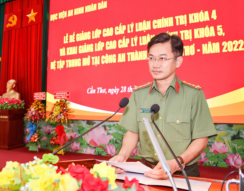 Thay mặt Đảng ủy, Ban Giám đốc CATP Cẩn Thơ, Đại tá, Trần Văn Dương - Thành ủy viên, Phó Bí thư Đảng ủy, Phó Giám đốc CATP Cần Thơ gửi lời cảm ơn sâu sắc tới sự quan tâm của Đảng ủy, Ban Giám đốc Học viện ANND; các thầy, cô giáo tham gia giảng dạy và quản lý lớp học. Đồng thời, đồng chí Phó Giám đốc CATP Cần Thơ yêu cầu các học viên cần nêu cao tinh thần đoàn kết, chủ động sắp xếp, bố trí công việc, thời gian để tham gia học tập đầy đủ, thực hiện nghiêm túc nội quy, quy chế.