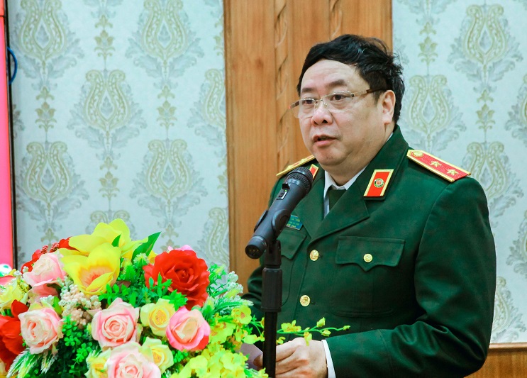 Trung tướng, PGS.TS Lê Văn Thắng - Bí thư Đảng ủy, Giám đốc Học viện phát biểu tại buổi Lễ trao tặng Huy hiệu 30 năm tuổi Đảng đợt 03/02/2023.