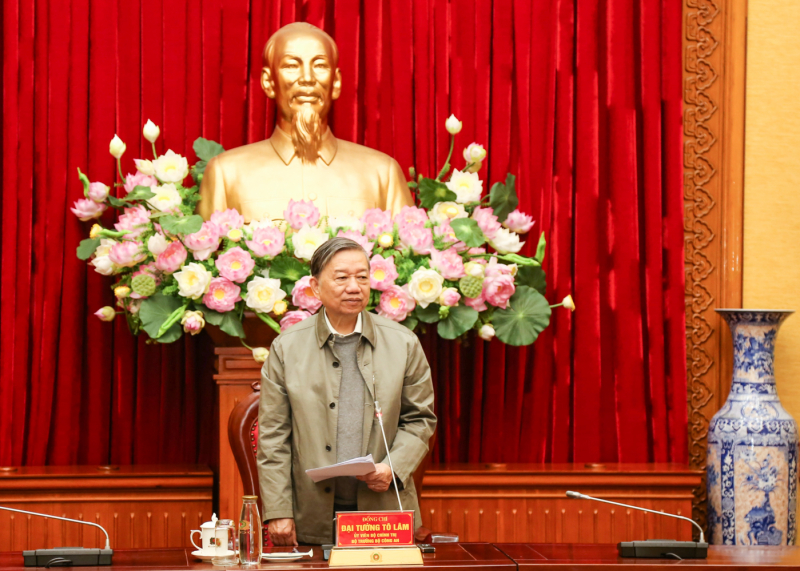 Bộ trưởng Tô Lâm phát biểu tại buổi làm việc.