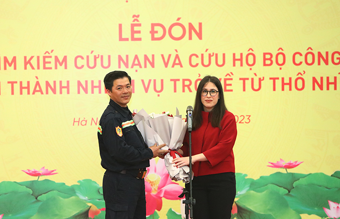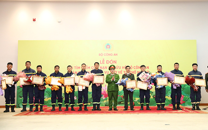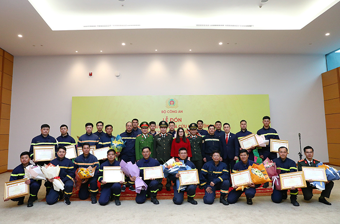 Sau 10 ngày xuất quân thực hiện nhiệm vụ CNCH thảm hỏa động đất tại Thổ Nhĩ Kỳ, đúng 15h10 ngày 19/2, chuyến bay chở Đoàn công tác cứu hộ quốc tế gồm 24 CBCS của Bộ Công an Việt Nam đã hạ cánh tại Sân bay quốc tế Nội Bài (Hà Nội). Lãnh đạo Bộ Công an đã tổ chức lễ đón, chủ trì tổ chức khen thưởng, động viên Đoàn công tác ngay tại sân bay.