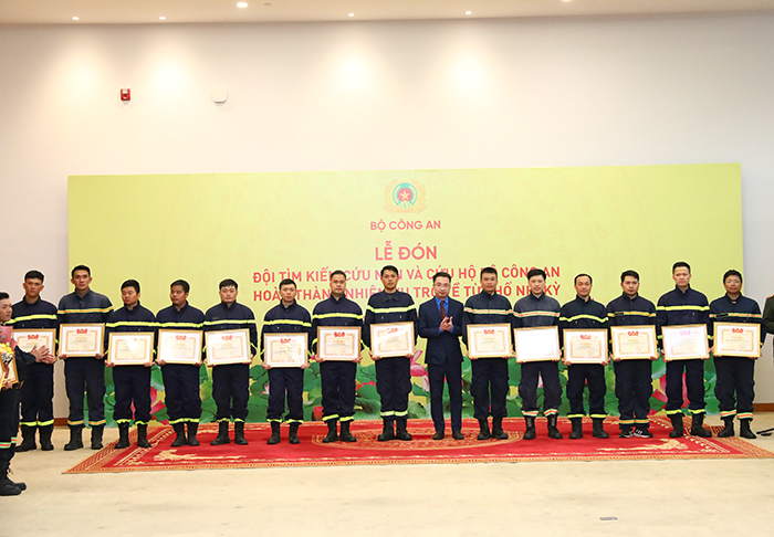 Nhân dịp này, Bộ Công an đã trao Bằng khen tặng các thành viên của Đoàn công tác. Trung ương Đoàn Thanh niên Cộng sản Hồ Chí Minh trao Bằng khen tặng 14 CBCS là đoàn viên. Đoàn công tác cũng được trao tặng Bằng khen của Chủ tịch Trung ương Hội Chữ thập đỏ Việt Nam.