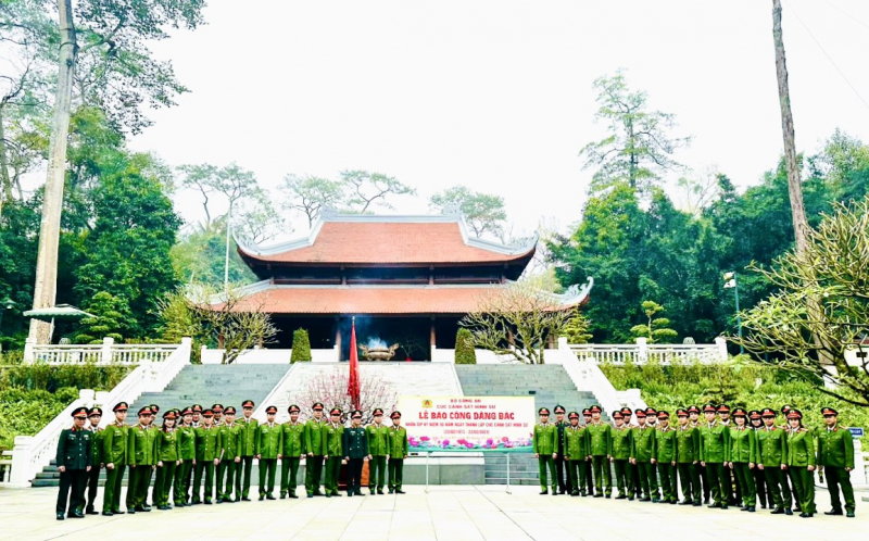 Cán bộ, chiến sĩ Cục Cảnh sát hình sự tổ chức Lễ báo công dâng Bác tại Nhà tưởng niệm Chủ tịch Hồ Chí Minh, khu Di tích K9 (huyện Ba Vì, TP Hà Nội).