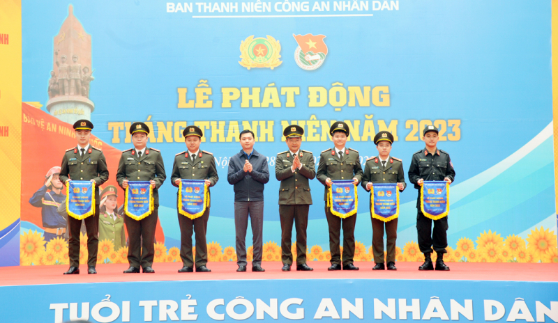 Tại buổi lễ, Ban tổ chức đã trao cờ lệnh ra quân Tháng Thanh niên năm 2023 đến các đơn vị Cụm trưởng Cụm thi đua trực thuộc Bộ Công an và Đoàn Thanh niên Công an TP Hà Nội...