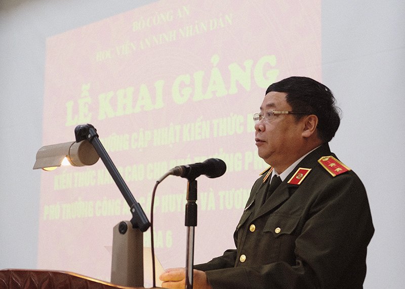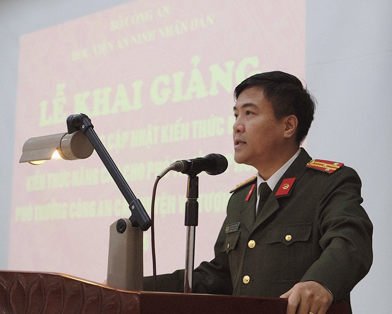 Trong diễn văn Khai giảng, Trung tướng, PGS.TS Lê Văn Thắng - Giám đốc Học viện nhấn mạnh, Đảng và Nhà nước ta luôn xác định công tác đào tạo và bồi dưỡng cán bộ, trong đó cán bộ thuộc diện lãnh đạo các cấp là khâu đặc biệt quan trọng của công tác cán bộ; là nhiệm vụ quan trọng, thường xuyên của Đảng, Nhà nước góp phần thực hiện thành công sự nghiệp công nghiệp hoá, hiện đại hoá đất nước. Quán triệt quan điểm đó, Đảng ủy Công an Trung ương và lãnh đạo Bộ Công an chỉ đạo tiếp tục đẩy mạnh công tác đào tạo, bồi dưỡng cán bộ trong đó có bồi dưỡng cập nhật kiến thức mới, kiến thức nâng cao cho phó trưởng phòng, phó trưởng Công an cấp huyện và tương đương.