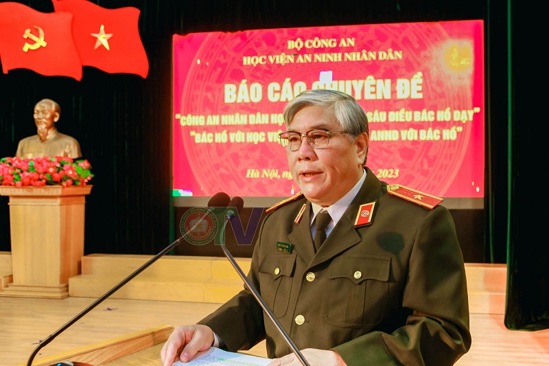 Sau Lễ phát động đợt thi đua, Học viện đã tổ chức nghe báo cáo chuyên đề “CAND học tập, thực hiện Sáu điều Bác Hồ dạy” và “Bác Hồ với Học viện ANND, Học viện ANND với Bác Hồ” do Thiếu tướng, PGS.TS Nguyễn Bình Ban, nguyên Viện trưởng Viện Lịch sử CAND trực tiếp truyền đạt./.