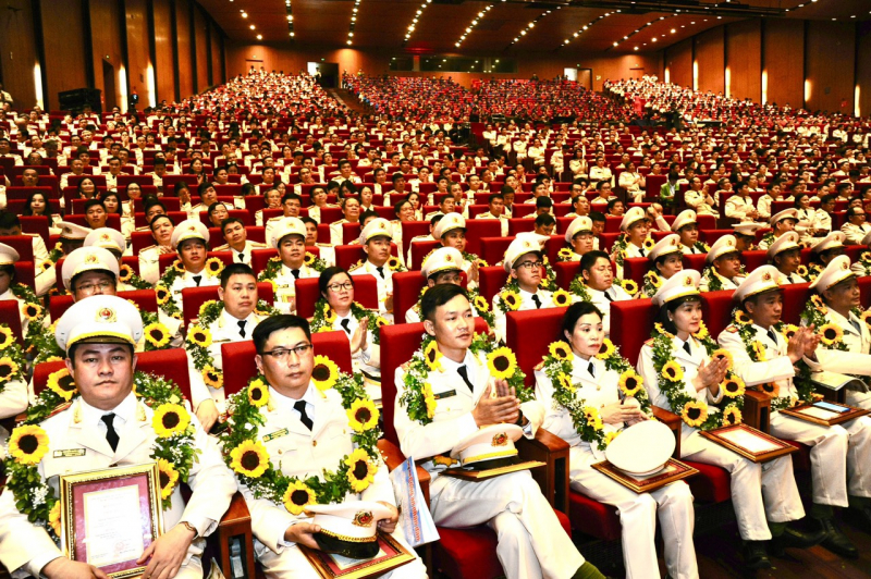Bộ trưởng Tô Lâm và Thứ trưởng Trần Quốc Tỏ tuyên dương 75 gương điển hình tiên tiến, đại diện hàng vạn CBCS CAND luôn khắc ghi lời Bác dạy, hết lòng, hết sức phụng sự Tổ quốc, nhân dân.