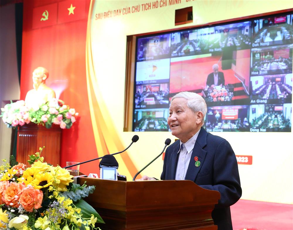 GS.TS Hoàng Chí Bảo, chuyên gia cao cấp, nguyên Ủy viên Hội đồng Lý luận Trung ương tham luận tại Hội thảo. |