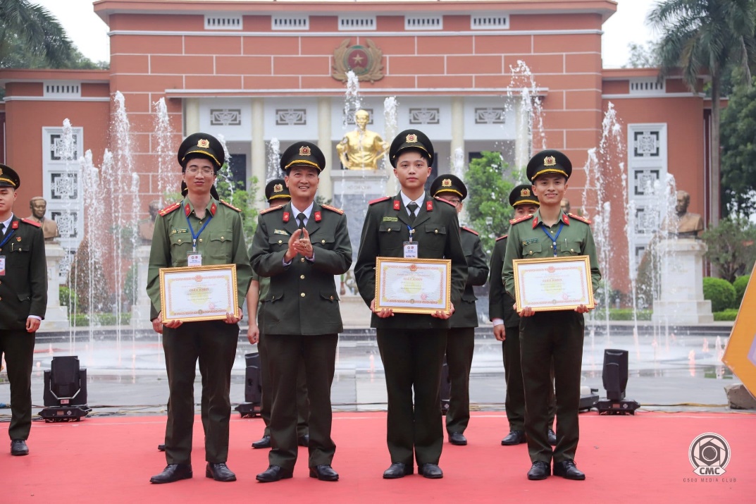 Thiếu tướng, PGS. TS Trần Anh Vũ - Phó Giám đốc Học viện, Trưởng Ban tổ chức trao giải cho các đơn vị tại Hội trại.