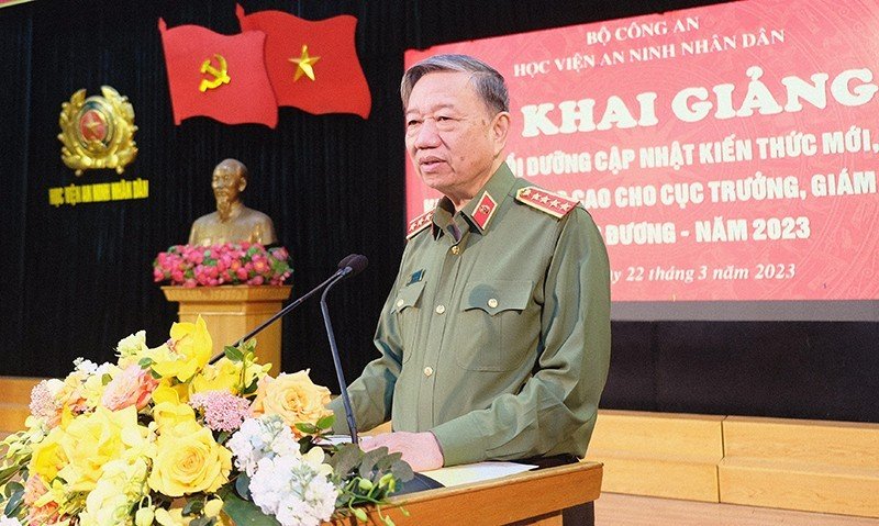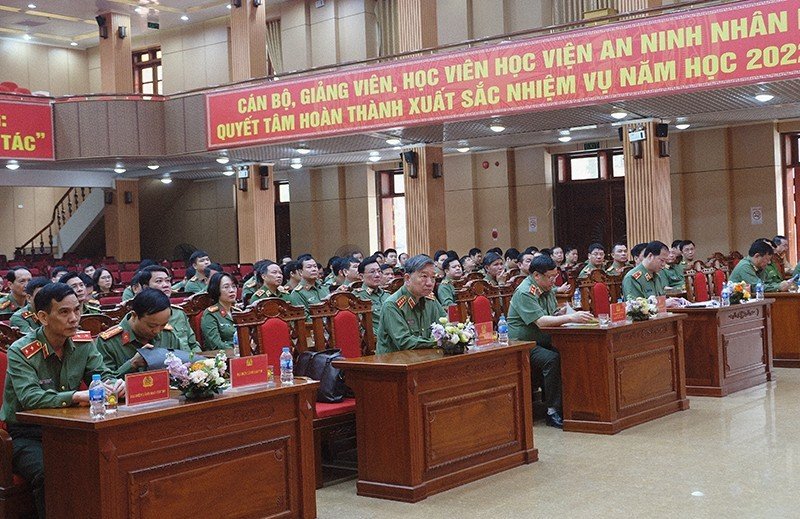 Sau Lễ Khai giảng, Đại tướng, GS.TS Tô Lâm - Ủy viên Bộ Chính trị, Bí thư Đảng ủy Công an Trung ương, Bộ trưởng Bộ Công an đã trực tiếp truyền đạt chuyên đề “Xây dựng lực lượng CAND thật sự trong sạch, vững mạnh, chính quy, tinh nhuệ, hiện đại đáp ứng yêu cầu, nhiệm vụ trong tình hình mới” cho học viên lớp Bồi dưỡng.