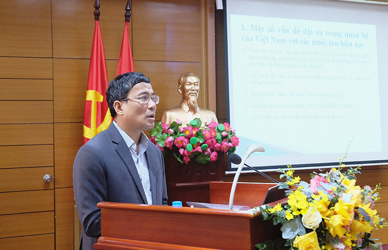 Bài giảng của đồng chí Thứ trưởng đã đề cập toàn diện đến các vấn đề có liên quan đến chính sách của các quốc gia có vai trò, vị thế, ảnh hưởng trên thế giới đối với Việt Nam như nhận thức về các nước lớn; chính sách đối ngoại của các nước lớn mới nổi; tác động, ảnh hưởng của các nước lớn đối với sự nghiệp bảo vệ an ninh quốc gia, bảo đảm trật tự an toàn xã hội đối với Việt Nam; những hàm ý chính sách mà Việt Nam cần cân nhắc, tính toán để bảo vệ lợi ích quốc gia, dân tộc mà vẫn hài hòa, cân bằng trong quan hệ với các nước lớn. Đồng thời, qua trao đổi, thảo luận với học viên lớp học, đồng chí Thứ trưởng Thường trực Bộ Ngoại giao đã giải đáp nhiều vấn đề thực tiễn mà các đơn vị trong ngành Công an đặt ra trong quan hệ của Việt Nam với một số nước lớn trên thế giới hiện nay; đồng thời gợi mở nhiều định hướng trong tiếp cận giải quyết các vấn đề như tranh thủ thời cơ, hóa giải thách thức, xử lý mối quan hệ giữa bảo vệ độc lập, chủ quyền, toàn vẹn lãnh thổ và giữ vững môi trường hòa bình, ổn định cho phát triển đất nước.