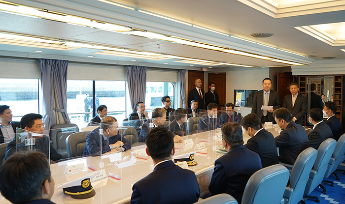Phó Đô đốc lực lượng Cảnh sát biển Nhật Bản Nagai Nobukazu giới thiệu về tuần tra ven biển Matsunami với Bộ trưởng Tô Lâm và Đoàn công tác.