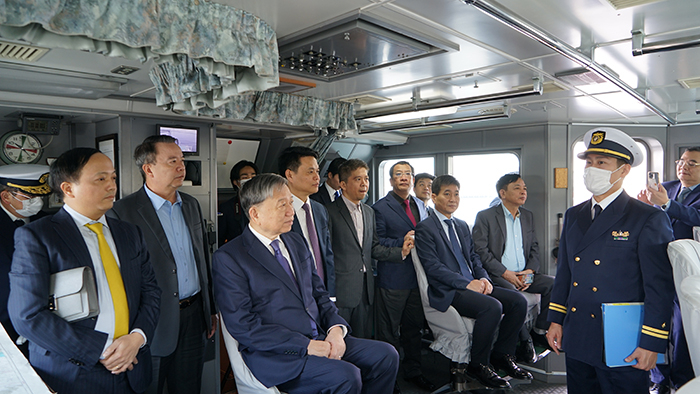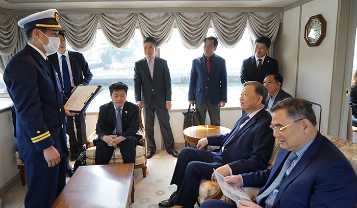 Bộ trưởng Tô Lâm bày tỏ vui mừng khi thăm lực lượng Cảnh sát biển Nhật Bản và thăm quan tầu tuần tra ven biển Matsunami của lực lượng Cảnh sát biển Nhật Bản. Nhấn mạnh, lực lượng Cảnh sát biển Nhật Bản sẽ kỷ niệm 75 năm ngày thành lập (1948-2023) vào ngày 1/5 tới, thay mặt Bộ Công an, Bộ trưởng Tô Lâm gửi lời chúc mừng nồng nhiệt nhất đến lực lượng Cảnh sát biển Nhật Bản, chúc lực lượng Cảnh sát biển sẽ ngày càng phát triển lớn mạnh, hoàn thành xuất sắc mọi nhiệm vụ được Chính phủ và nhân dân giao phó.