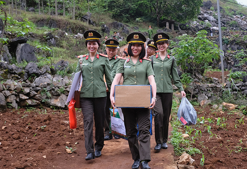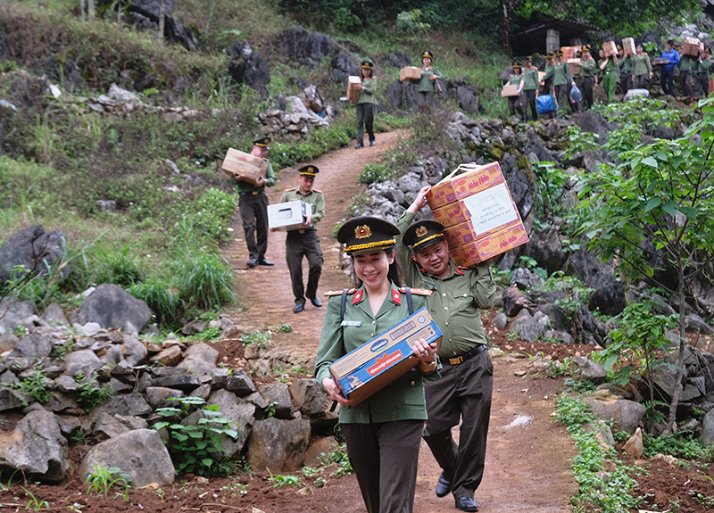 Đặc biệt, với tinh thần sẻ chia khó khăn với lực lượng Công an xã, các hộ nghèo, hộ gia đình chính sách, các cháu học sinh nghèo vượt khó, học giỏi trên địa bàn, chiều ngày 31/3/2023, Đoàn công tác đã tổ chức chương trình thiện nguyện tại xã biên giới Sóc Hà, huyện Hà Quảng, tỉnh Cao Bằng. Lãnh đạo Công an huyện Hà Quảng, Công an xã Sóc Hà đã trực tiếp đón Đoàn và cùng nhau trao đổi, chia sẻ một số thông tin về tình hình an ninh, trật tự và những khó khăn, vất vả của đồng bào sinh sống trên địa bàn, cũng như những nỗ lực, cố gắng của các cán bộ, chiến sĩ Công an xã Sóc Hà, chính quyền xã Sóc Hà trong đảm bảo an ninh, trật tự, bảo vệ cuộc sống bình yên của nhân dân.