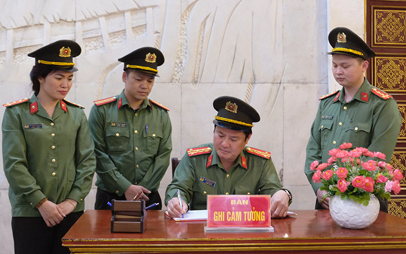 Đồng chí Trưởng đoàn ghi lưu bút tại khu di tích.