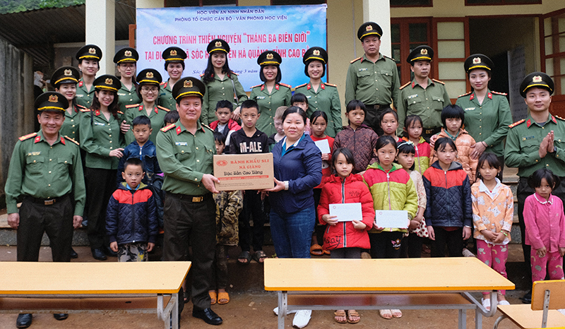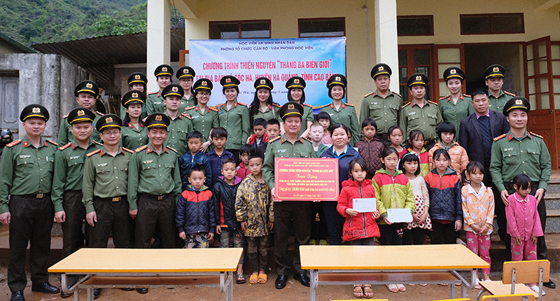 Hướng tới kỷ niệm 77 năm Ngày truyền thống lực lượng Tham mưu Công an nhân dân (18/4/1946 - 18/4/2023), Văn phòng Học viện và Phòng Tổ chức cán bộ - Học viện An ninh nhân dân phối hợp hưởng ứng chương trình “Tháng Ba biên giới - Biên cương Tổ quốc tôi” và tổ chức chương trình về Nguồn tại Khu di tích Quốc gia đặc biệt Pác Bó, đồng thời tổ chức chương trình thiện nguyện, thăm và tặng quà một số đơn vị, gia đình, cá nhân trên địa bàn xã biên giới Sóc Hà, huyện Hà Quảng, tỉnh Cao Bằng.
