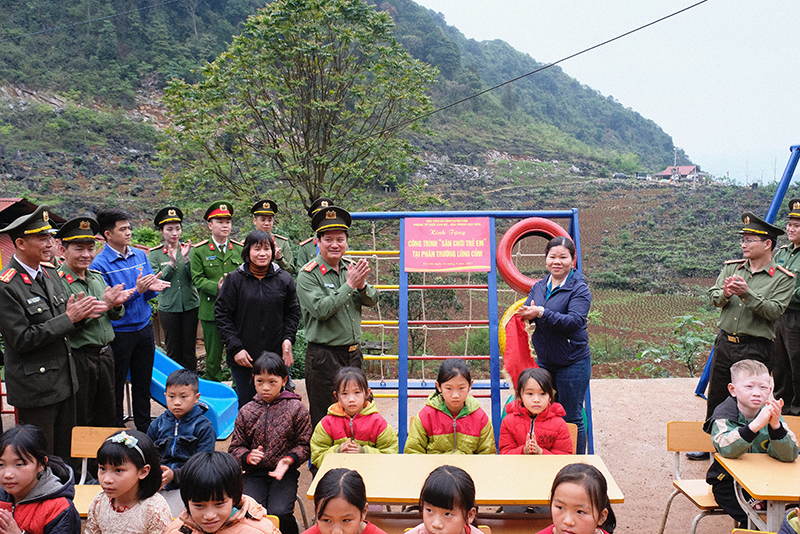 Đoàn công tác khánh thành khu sân chơi thiếu nhi và tặng quà tại phân trường Lũng Củm.