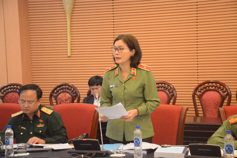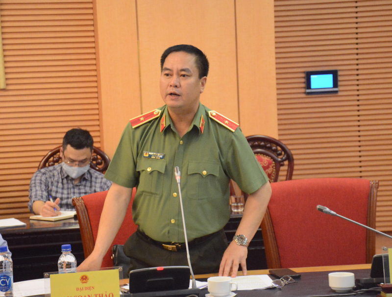Thiếu tướng Phạm Công Nguyên báo cáo một số vấn đề liên quan đến Luật Căn cước.