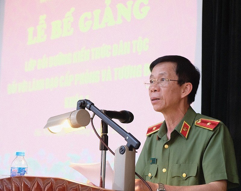 Trong diễn văn Bế giảng, Thiếu tướng, TS Trần Kim Hải - Phó Giám đốc Học viện ANND khẳng định, sau 05 ngày học tập nghiêm túc và trách nhiệm cao, 81 học viên lớp Bồi dưỡng kiến thức dân tộc cho lãnh đạo cấp phòng và tương đương, Khoá 1 năm 2023 đã hoàn thành xuất sắc nhiệm vụ đề ra và được cấp chứng chỉ hoàn thành chương trình bồi dưỡng. Trong thời gian học tập, học viên đã được nghiên cứu, lĩnh hội 06 chuyên đề với những nội dung cốt lõi về kiến thức dân tộc và đảm bảo an ninh dân tộc do các chuyên gia thực tiễn, nhà khoa học, lãnh đạo, chỉ huy có chuyên môn nghiệp vụ chuyên sâu về công tác dân tộc ở trong và ngoài ngành Công an trực tiếp giảng dạy. Đây là những nội dung có ý nghĩa thiết thực, giúp học viên vận dụng vào quá trình lãnh đạo, chỉ đạo và tổ chức triển khai công tác bảo đảm an ninh dân tộc tại địa phương. Nhất là trong bối cảnh xu thế toàn cầu hoá và hội nhập quốc tế diễn ra ngày càng sâu rộng, vấn đề dân tộc tiếp tục là một trong những vấn đề trọng tâm mà các thế lực thù địch triệt để lợi dụng triển khai các hoạt động chống phá nhằm chia rẽ khối đại đoàn kết toàn dân tộc.