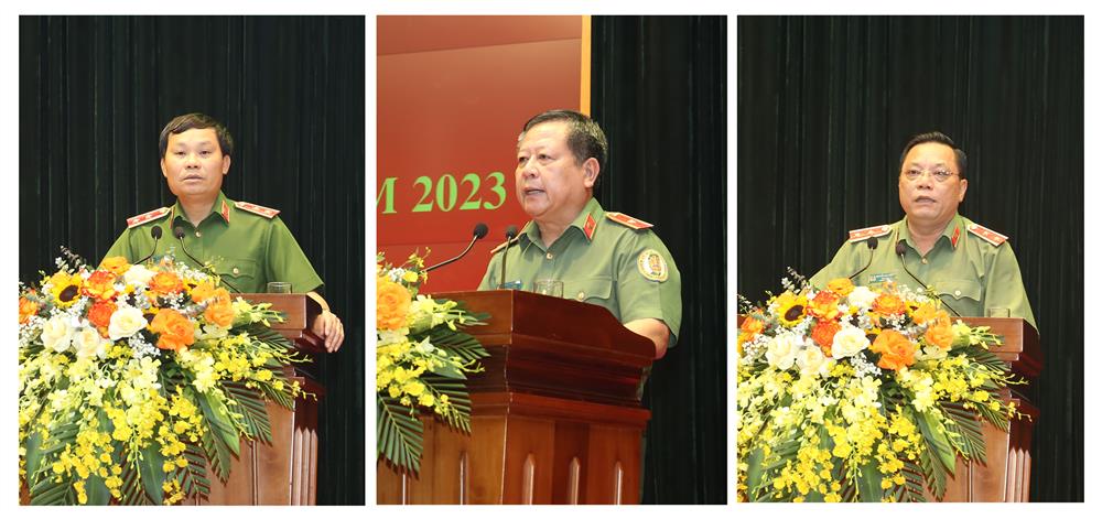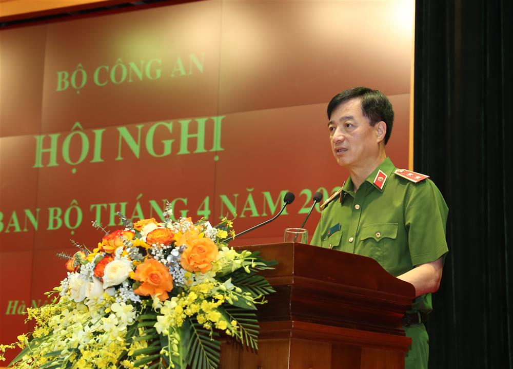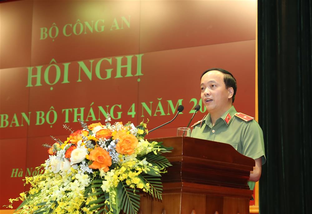 Trình bày báo cáo tóm tắt tình hình, kết quả công tác trong tháng 4 và nhiệm vụ công tác trọng tâm tháng 5/2023, Thiếu tướng Đặng Hồng Đức, Chánh Văn phòng Bộ Công an nêu rõ: Trong tháng, lực lượng Công an nhân dân đã triển khai nghiêm túc, hiệu quả các chỉ đạo của Trung ương, Chính phủ, Quốc hội; ban hành nhiều chương trình, kế hoạch, điện chỉ đạo, mệnh lệnh công tác; bảo đảm an ninh chính trị, giữ vững trật tự, an toàn xã hội…