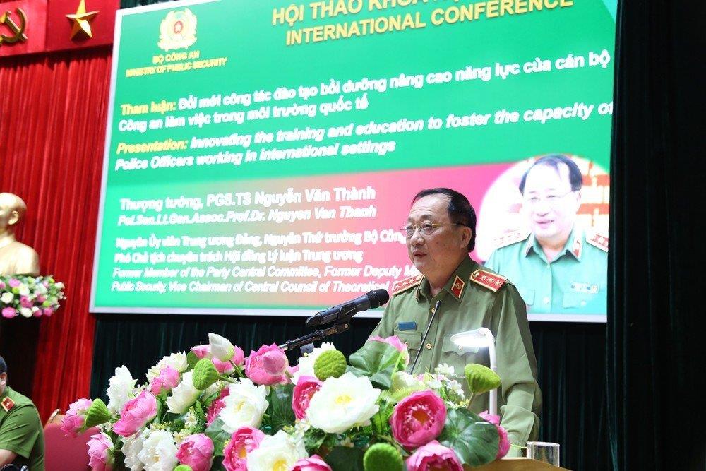Phát biểu khai mạc Hội thảo, Trung tướng, GS.TS Trần Minh Hưởng, Giám đốc Học viện CSND nhấn mạnh: Trước những thách thức và yêu cầu của công cuộc hội nhập quốc tế, việc xây dựng được đội ngũ cán bộ có đức, có tài, hội đủ năng lực, phẩm chất, nắm bắt xu thế và đáp ứng các tiêu chuẩn, kỹ năng làm việc trong môi trường quốc tế đã trở thành yêu cầu cấp thiết. Nghị quyết số 26-NQ/TW ngày 19/5/2018 của Hội nghị lần thứ 7, Ban Chấp hành Trung ương Đảng đã đặt ra yêu cầu hoàn thiện năng lực đối với đội ngũ các cấp đến năm 2030, trong đó có yêu cầu xây dựng đội ngũ cán bộ có khả năng làm việc trong môi trường quốc tế.