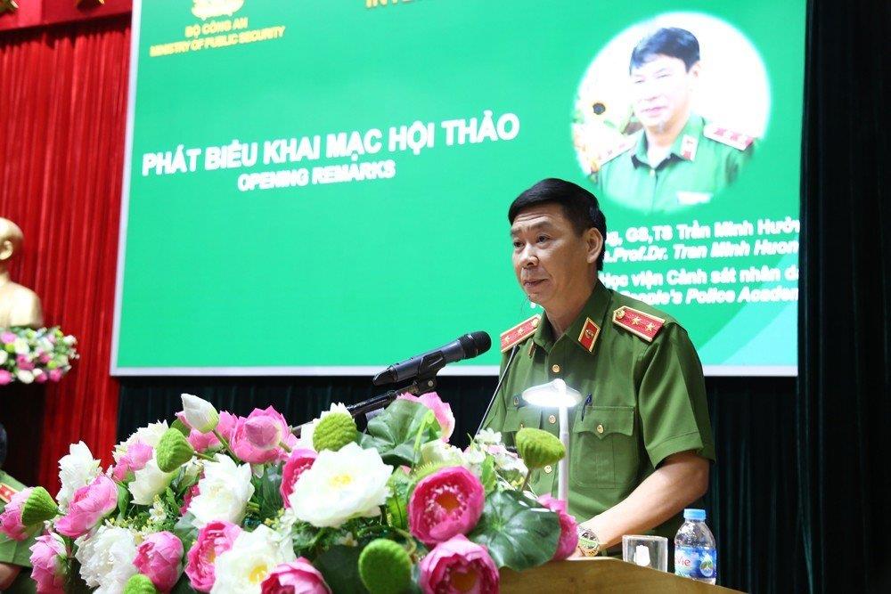 Trung tướng, GS.TS Trần Minh Hưởng, Giám đốc Học viện CSND phát biểu tại Hội thảo. |