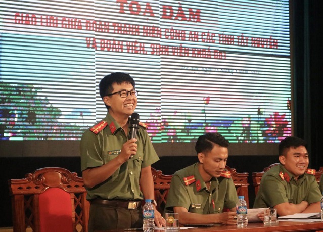 Phát biểu tại Tọa đàm, Đại uý Trần Văn Hiểu - Uỷ viên Ban Chấp hành Trung ương Đoàn, Bí thư Đoàn Thanh niên Học viện ANND chân thành cảm ơn các đồng chí trong Ban Chấp hành Đoàn Thanh niên Công an các tỉnh Tây Nguyên đã dành thời gian giao lưu, chia sẻ cùng học viên Khoá D51. Đồng chí Bí thư Đoàn Thanh niên Học viện mong muốn, sau buổi Tọa đàm với những kiến thức thực tế, bổ ích, học viên Khoá D51 sẽ có định hướng cụ thể về chương trình hoạt động thực tế tại địa bàn Tây nguyên, góp phần nâng cao chất lượng, hiệu quả công tác thực tập tốt nghiệp cho học viên thời gian tới.