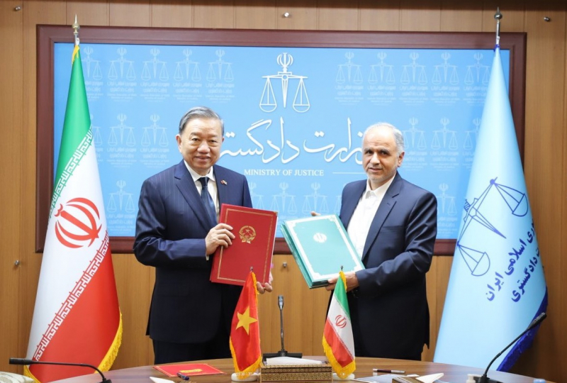 Bộ trưởng Tô Lâm và Bộ trưởng Bộ Tư pháp Iran Amin Houssein Rahimi ký Hiệp định dẫn độ và Hiệp định chuyển giao người bị kết án phạt tù giữa Việt Nam và Iran.