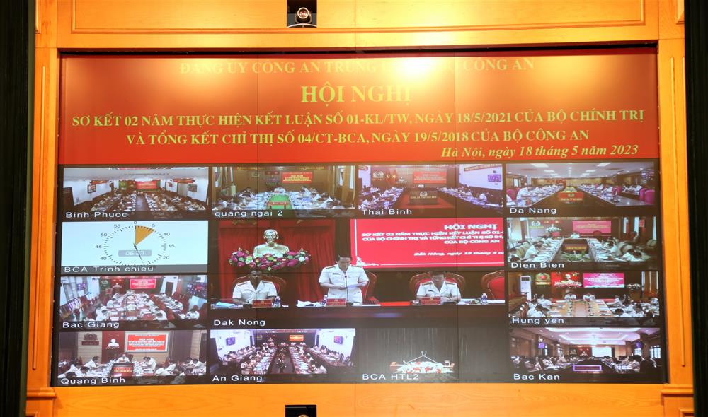 Trong không khí toàn Đảng, toàn dân, toàn quân đang ra sức thi đua lập thành tích chào mừng kỷ niệm 133 năm Ngày sinh Chủ tịch Hồ Chí Minh, sáng 18/5/2023, tại Hà Nội, Đảng ủy Công an Trung ương, Bộ Công an trang trọng tổ chức Hội Nghị sơ kết 02 năm thực hiện Kết luận số 01 ngày 18/5/2021 của Bộ Chính trị và tổng kết 05 năm thực hiện Chỉ thị số 04 ngày 19/5/2018 của Bộ Công an. Đại tướng Tô Lâm, Ủy viên Bộ Chính trị, Bí thư Đảng ủy Công an Trung ương, Bộ trưởng Bộ Công an dự và chỉ đạo Hội nghị.