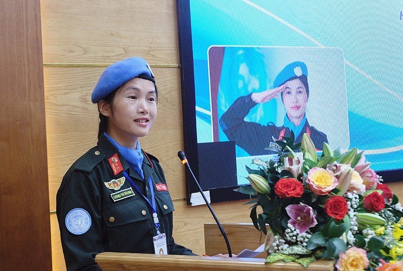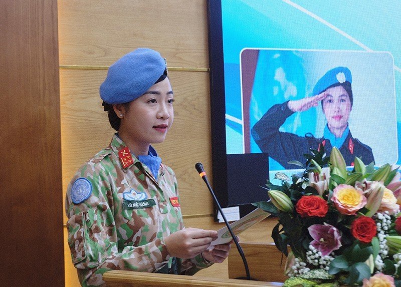 Đại uý Vũ Nhật Hương - Trợ lý Hợp tác quốc tế, Cục gìn giữ hoà bình Việt Nam - nguyên Sĩ quan Truyền thông, Phái bộ gìn giữ hòa bình Liên hợp quốc Cộng hoà Trung Phi và Trung tá Lương Thị Trà Vinh - cán bộ thuộc Văn phòng thường trực Bộ Công an về gìn giữ hoà bình - nữ sĩ quan trực tiếp tham gia lực lượng gìn giữ hòa bình Liên hợp quốc đã chia sẻ cơ hội, khó khăn, thách thức của các sĩ quan nói chung và nữ sĩ quan nói riêng khi tham gia thực hiện nhiệm vụ này, cũng như đưa ra những kinh nghiệm thực tiễn trong suốt thời gian tham gia hoạt động huấn luyện, đào tạo, giúp lực lượng nữ sĩ quan Công an nhân dân chuẩn bị tốt tâm lý sẵn sàng thực hiện nhiệm vụ khi được yêu cầu.