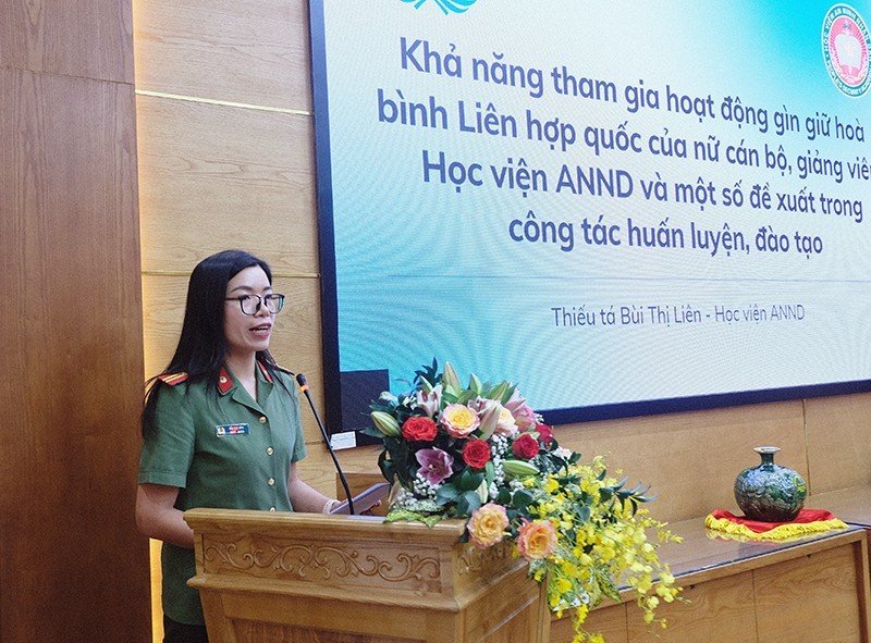Phát biểu khai mạc Hội nghị, Đại tá, PGS.TS Trịnh Ngọc Quyên - Giám đốc Học viện ANND khẳng định, yêu chuộng hòa bình là truyền thống tốt đẹp của dân tộc Việt Nam. Việt Nam luôn là thành viên có trách nhiệm của cộng đồng quốc tế, nỗ lực, tích cực tham gia vào các hoạt động gìn giữ hoà bình. Từ năm 2014 đến nay, đã có hơn 500 lượt sĩ quan thuộc các lực lượng vũ trang của Việt Nam đã và đang tích cực tham gia các Phái bộ của Liên hợp quốc tại các quốc gia và vùng lãnh thổ. Các đại diện của Việt Nam đã hoàn thành xuất sắc nhiệm vụ mà Đảng, Nhà nước giao phó, được Liên hợp quốc và cộng đồng quốc tế đánh giá cao. Việt Nam tự hào là quốc gia có 13% số nữ quân nhân trên tổng số quân nhân tham gia vào hoạt động gìn giữ hòa bình Liên hợp quốc. Sự tham gia ngày càng nhiều của các nữ sĩ quan trong Phái bộ gìn giữ hòa bình Liên hợp quốc là nỗ lực không ngừng của Việt Nam trong bối cảnh thúc đẩy bình đẳng giới, tăng cường trao quyền cho phụ nữ, đóng góp vào một tương lai bền vững, an ninh, an toàn trong khu vực và trên thế giới.