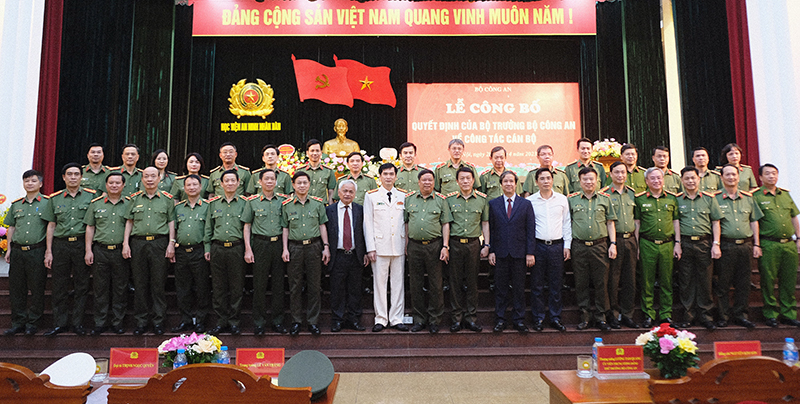 Công bố quyết định của Bộ trưởng Bộ Công an về việc nghỉ công tác chờ hưởng chế độ hưu trí đối với Trung tướng, PGS.TS Lê Văn Thắng và trao quyết định điều động Đại tá, PGS.TS Trịnh Ngọc Quyên giữ chức vụ Giám đốc Học viện An ninh nhân dân