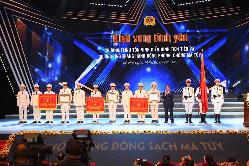 Tối 14/6/2023, tại Hà Nội, Bộ Công an phối hợp với Đài Truyền hình Việt Nam tổ chức Chương trình tôn vinh điển hình tiên tiến và hưởng ứng Tháng hành động phòng, chống ma túy. Đồng chí Phạm Minh Chính...