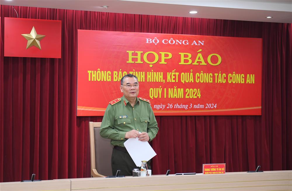 Ngày 26/3/2024, tại Hà Nội, Bộ Công an tổ chức Họp báo thông tin về tình hình, kết quả các mặt công tác công an Quý I năm 2024. Trung tướng Tô Ân Xô, Trợ lý Ủy viên Bộ Chính trị - Bộ trưởng Bộ Công an...