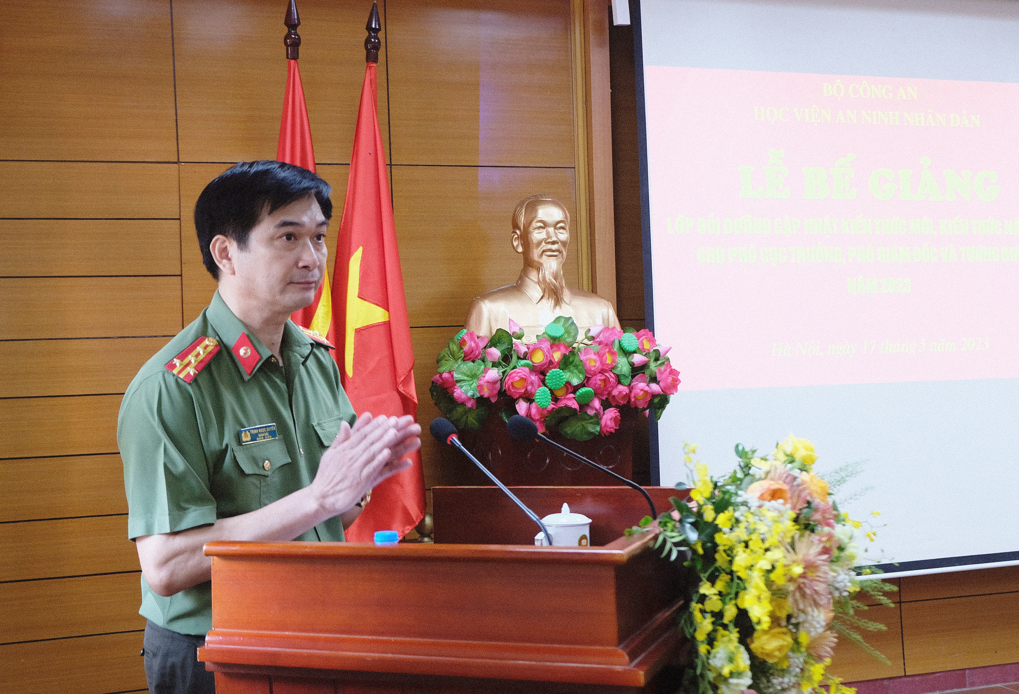 Ngày 26/4/2023, Học viện An ninh nhân dân (ANND) tổ chức Bế giảng lớp Bồi dưỡng kiến thức mới, kiến thức nâng cao cho Trưởng phòng, Trưởng công an cấp huyện và tương đương - Khoá 2 năm 2023.