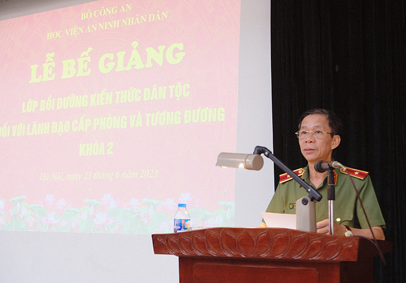 Ngày 23/6/2023, Học viện An ninh nhân dân (ANND) tổ chức Bế giảng lớp Bồi dưỡng kiến thức dân tộc cho lãnh đạo cấp phòng và tương đương - Khoá 2 năm 2023.