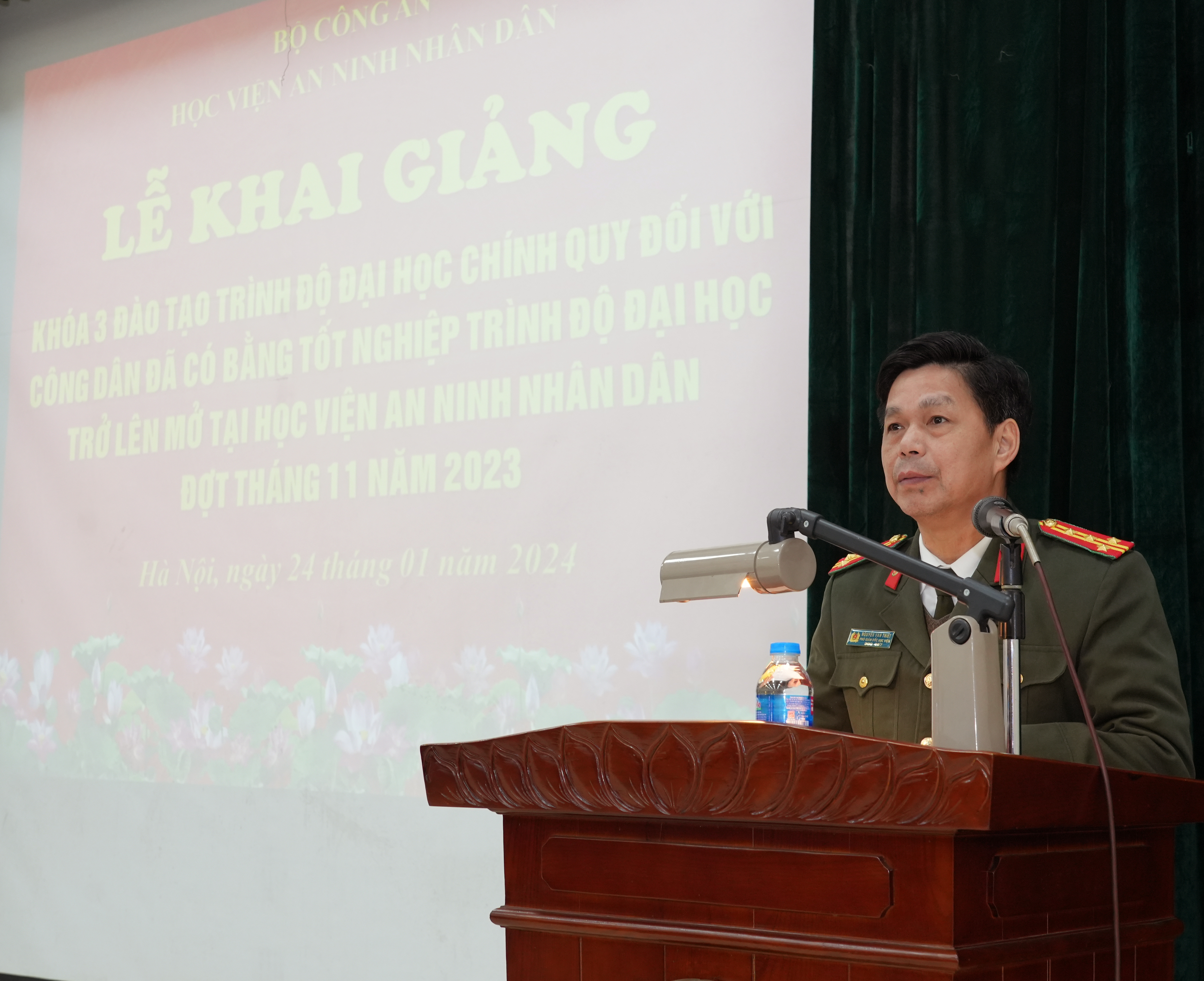 Ngày 24/01/2024, Học viện An ninh nhân dân (ANND) tổ chức Lễ Khai giảng Khóa 3 đào tạo trình độ đại học chính quy tuyển mới đối với công dân đã có bằng tốt nghiệp trình độ đại học trở lên mở tại Học v...