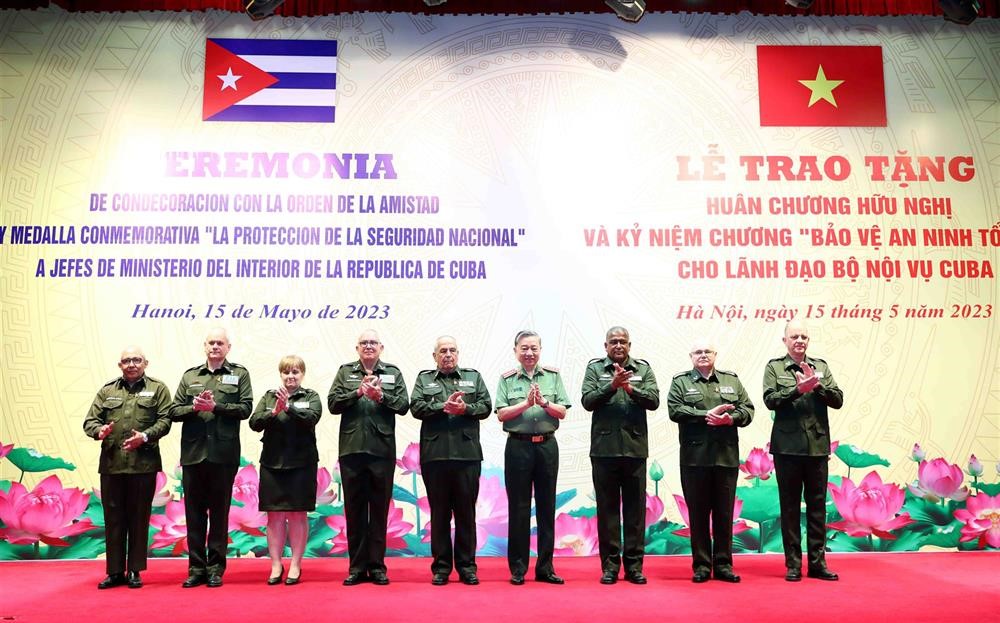 Chiều 15/5/2023, tại Hà Nội, Bộ Công an Việt Nam đã tổ chức Lễ trao Huân chương Hữu nghị và Kỷ niệm chương “Bảo vệ An ninh Tổ quốc” tặng Bộ trưởng Lázaro Alberto Álvarez Casas và các cá nhân của Bộ Nộ...