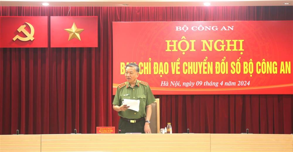 Chiều ngày 09/4/2024, tại Hà Nội, Đại tướng Tô Lâm, Ủy viên Bộ Chính trị, Bộ trưởng Bộ Công an, Trưởng Ban Chỉ đạo về chuyển đổi số Bộ Công an đã chủ trì Hội nghị của Ban Chỉ đạo về chuyển đổi số Bộ ...
