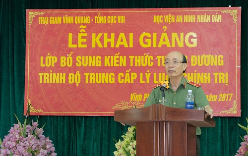 Khai giảng lớp bổ sung kiến thức tương đương trình độ trung cấp lý luận chính trị cho cán bộ công tác tại Trại giam Vĩnh Quang - Tổng cục VIII